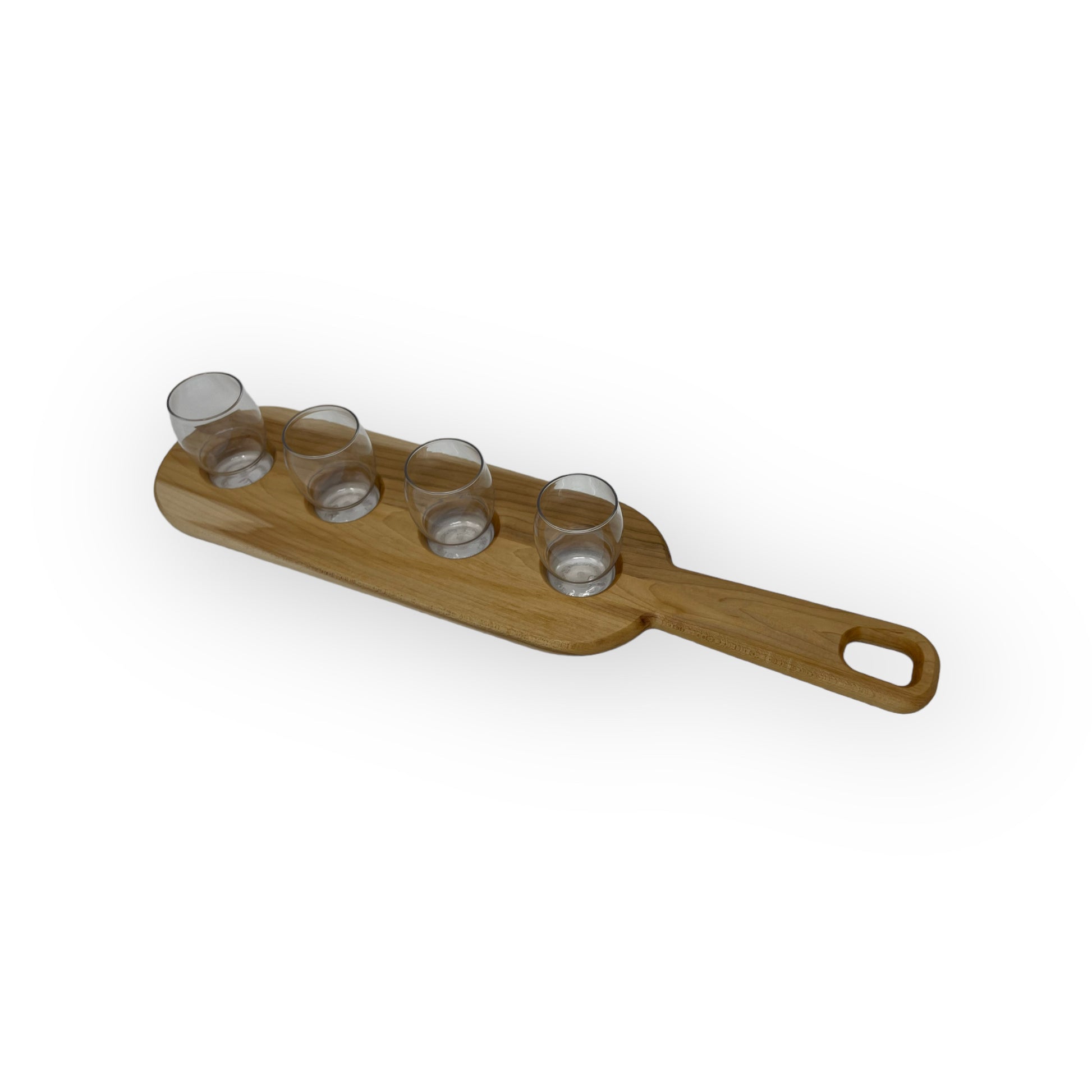 Each paddle comes with 4 x 4oz drink taster glasses. The glasses are made from high quality plastic and can be “snapped” together for easy storage.